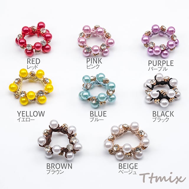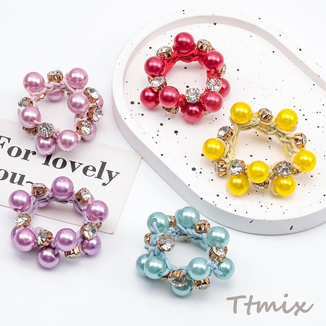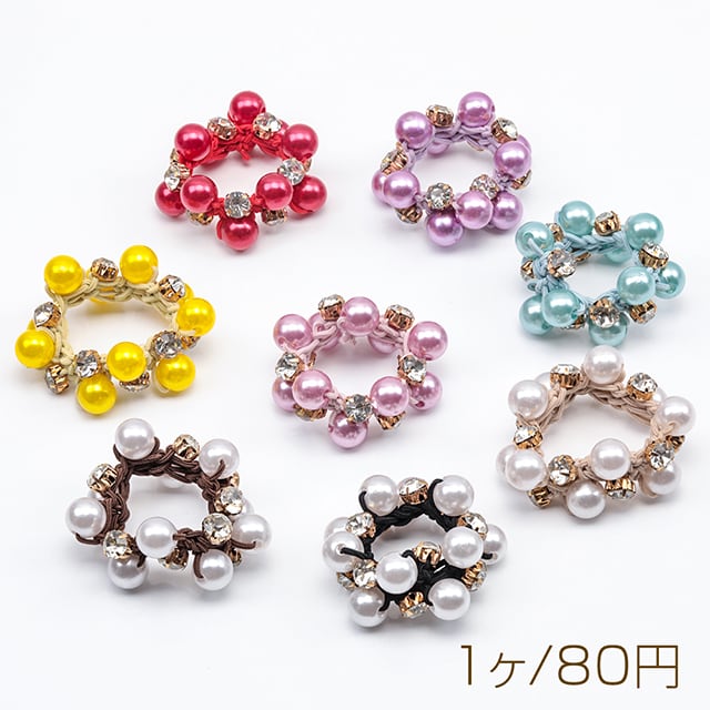 TH1480 ヘアゴム 手編み ABSパール ストーン付き カラフル キラキラ 髪留め ヘアアクセサリー 単品(1ヶ) | Beads&parts BASE2号店