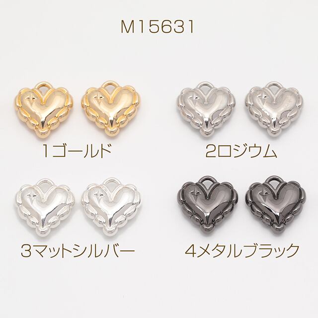 M15631 ハートチャーム メタリック フリル付き ハート 可愛い ハートチャーム メタルチャーム 約12×13mm(6ヶ) | Beads&parts BASE2号店