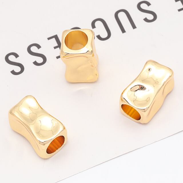 M15638 メタルビーズ 穴大きめ 不規則 長方形 キューブ ビーズスペーサー 基礎金具 メタルパーツ 約12×20mm(2ヶ) | Beads&parts BASE2号店