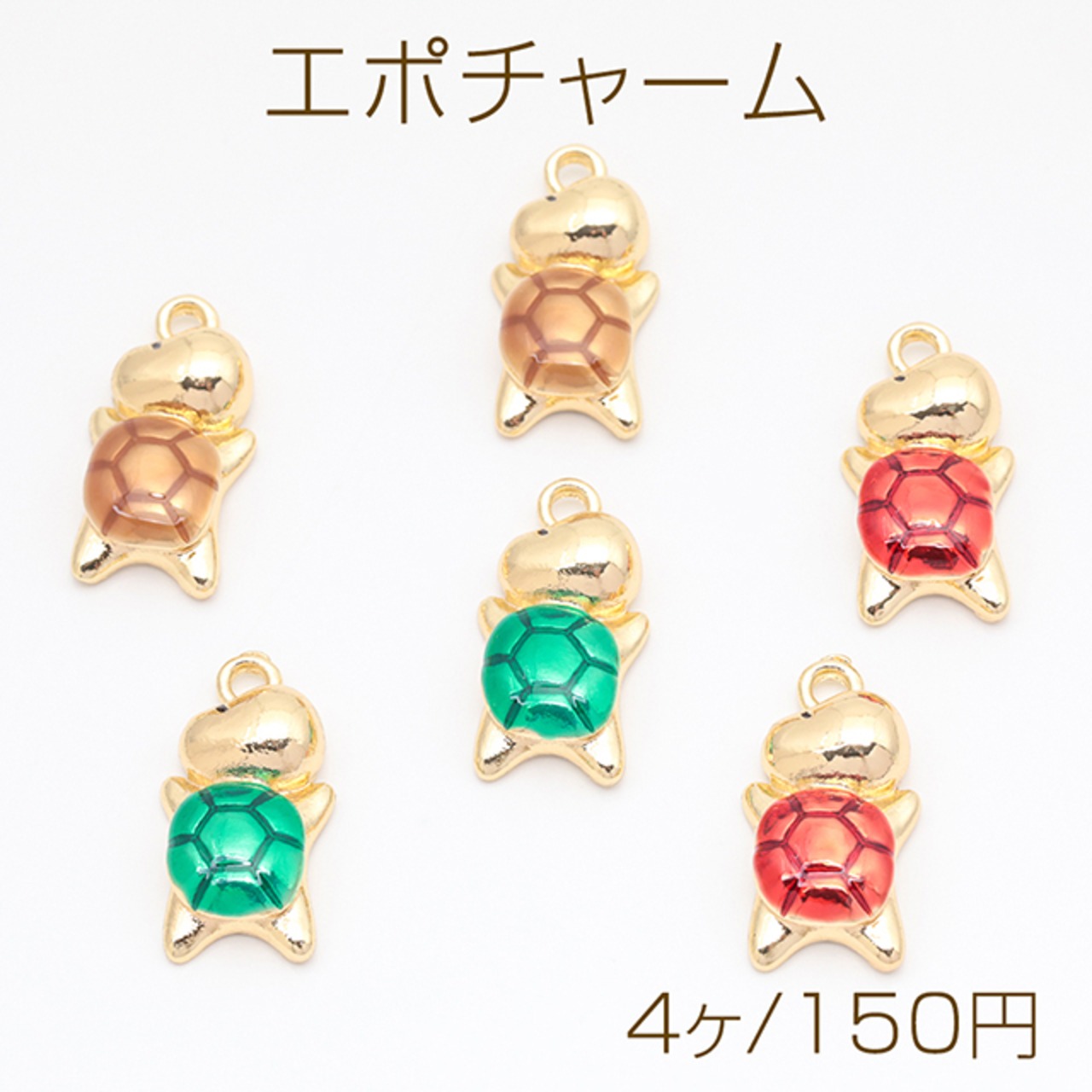 M15641 エポチャーム かめ カメ 亀 ピカピカ 半面 亀チャーム メタルチャーム 約11×21mm(4ヶ) | Beads&parts BASE2号店