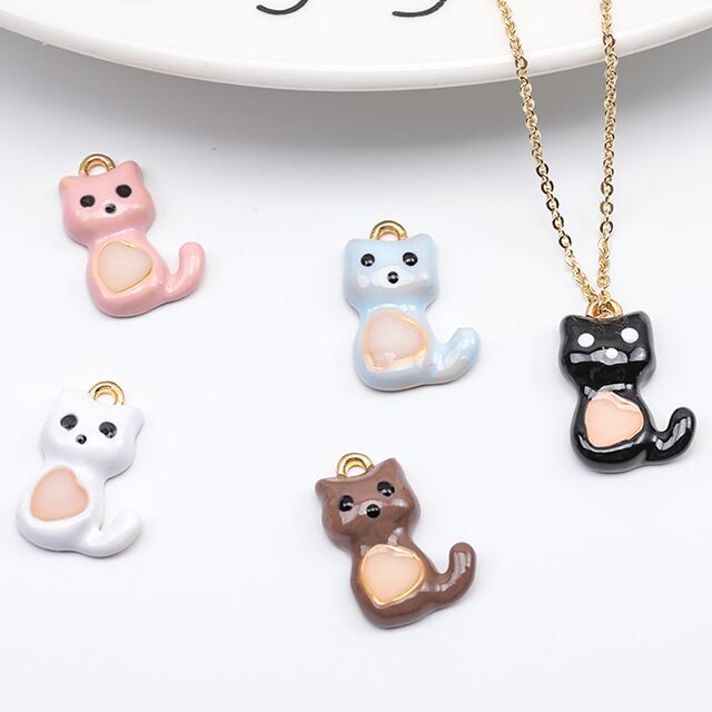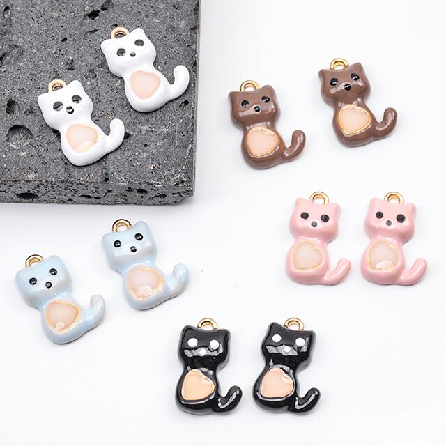 M15642 エポチャーム キュート 手描き こねこ ネコ 猫 半面 猫チャーム メタルチャーム 約12×18mm(4ヶ) | Beads&parts BASE2号店