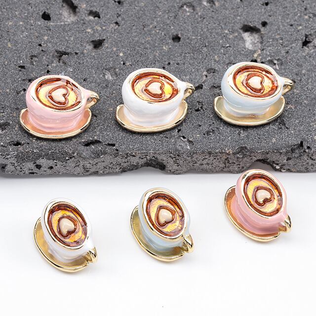 M15645 エポチャーム コーヒー カップ ハート カフェオレ 飲み物 半面 メタルチャーム 約11×19mm(4ヶ) | Beads&parts BASE2号店