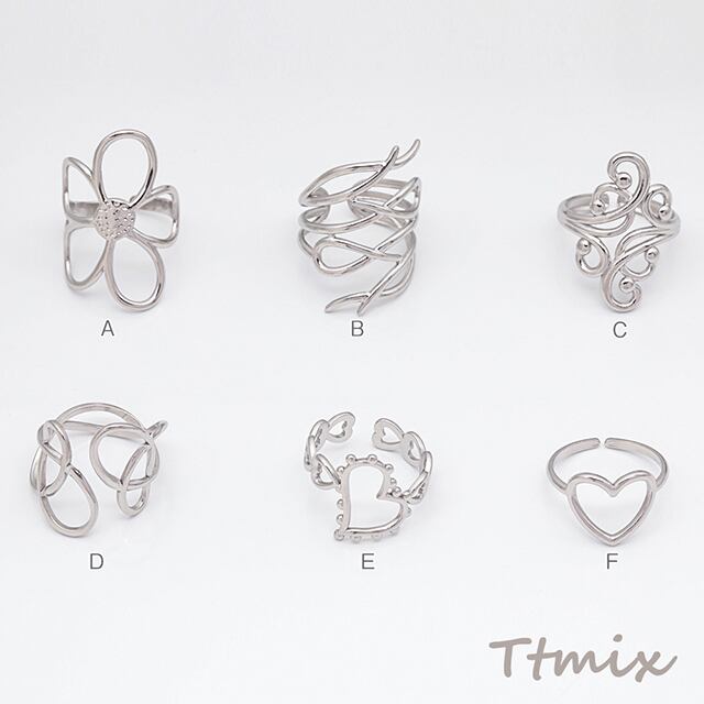 サイズ:(A)16号内径約18mm(幅約30mm)(B)16号内径約18mm(幅約28mm)(C)16号内径約18mm(幅約27mm)(D)16号内径約18mm(幅約18mm)(E)16号内径約18mm(幅約16mm)(F)16号内径約18mm(幅約12mm)