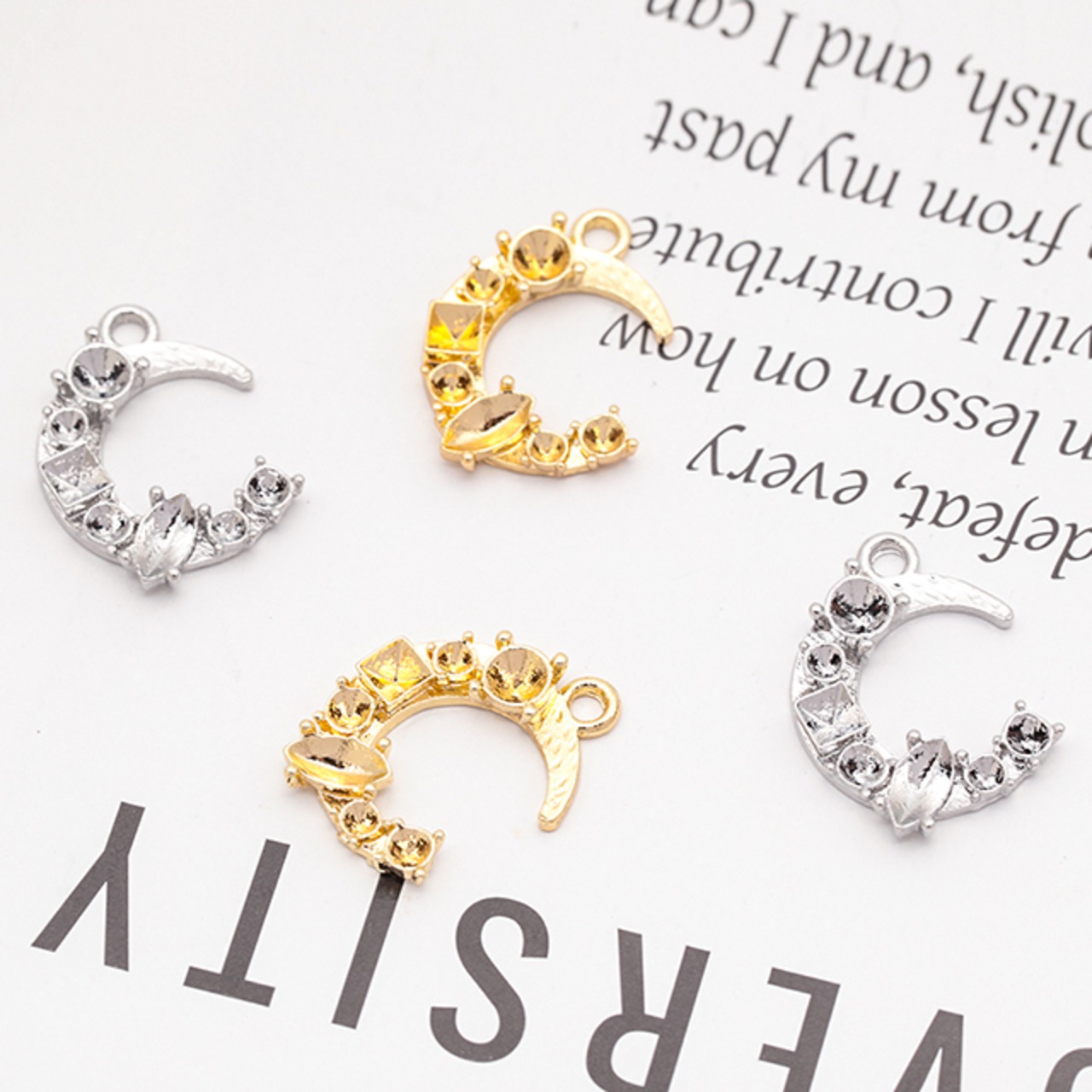 M15698 石座チャーム 三日月型 貼り付け 台座 パール・ストーン用 宇宙チャーム メタルチャーム 約13×18mm(6ヶ) | Beads&parts BASE2号店