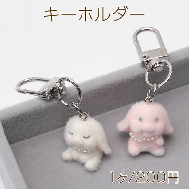 M15802 キーホルダー たれ耳ウサギ うさぎ 兎 キュート ネックレス付きフロッキーチャーム カラビナ バッグチャーム(1ヶ) | Beads&parts BASE2号店