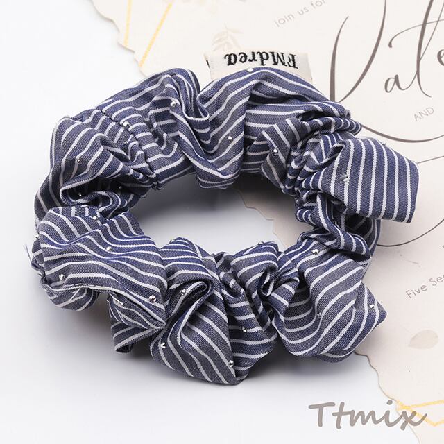 TH1488 シュシュ 爽やか ブルー 横ストライプ ヘアアレンジ ヘアゴム ヘアアクセサリー 約9cm(1ヶ) | Beads&parts BASE2号店