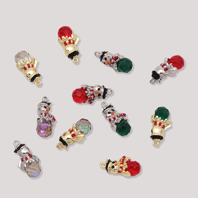 M15815 クリスマスチャーム 立体 カラフル 雪だるま スノーマン エポチャーム メタルチャーム 約11×21mm(1ヶ) | Beads&parts BASE2号店