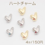 M15818 ハートチャーム 手書き風 ぷっくりチャーム ストーン付き 立体 メタルチャーム 約8×9mm(4ヶ) | Beads&parts BASE2号店