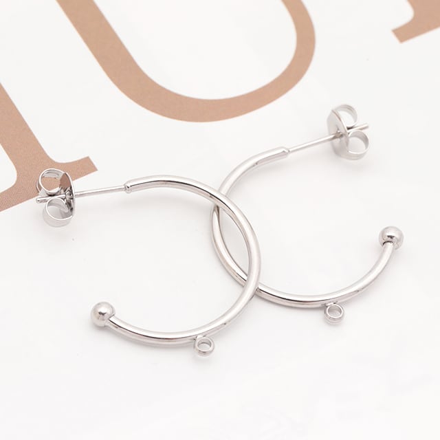 M15854 ステンレス製ピアス金具 C字 横向き 1カン付き シルバーカラー 約1.5×22mm(2ヶ) | Beads&parts BASE2号店