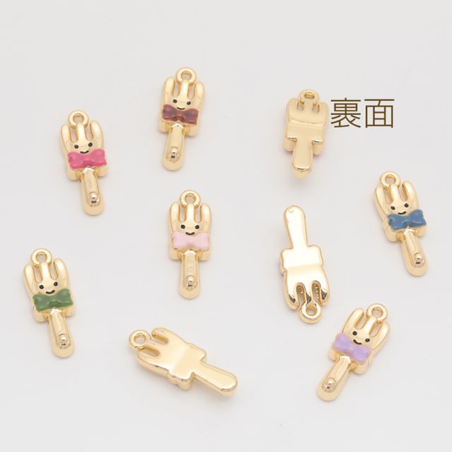 M15886 フォークチャーム スマイル リボン付き 食器チャーム エポチャーム メタルチャーム 約7.5×21mm(2ヶ) | Beads&parts BASE2号店