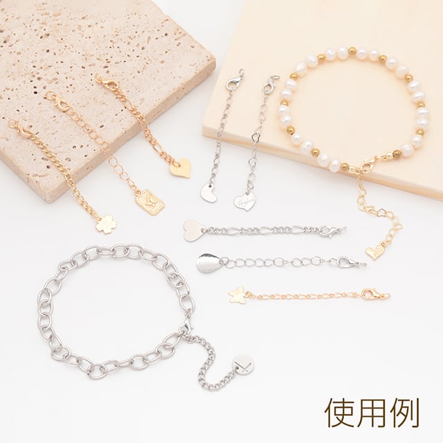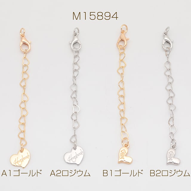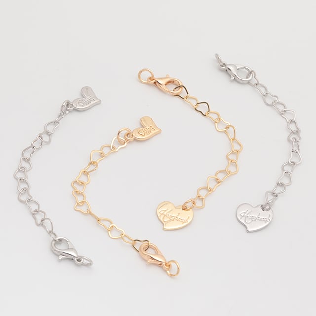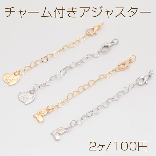 M15894 チャーム付きアジャスター ハートチャーム ハートチェーン ブレスレット/ネックレス延長チェーン カニカン付き 約7cm(2ヶ) | Beads&parts BASE2号店