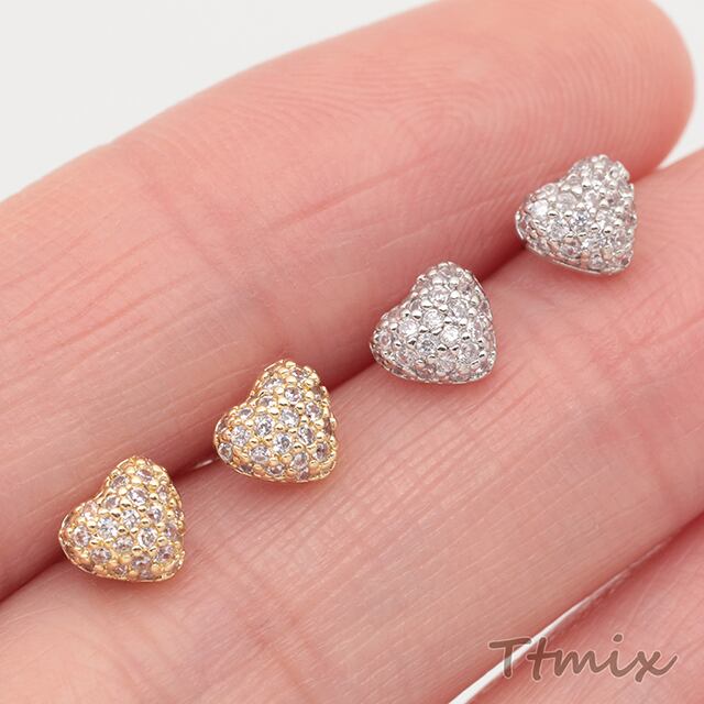 M15902 デザインピアス ハート ラインストーン ジルコニア キャッチ鉄製 メタルピアス 約5.5×6mm(2ヶ)