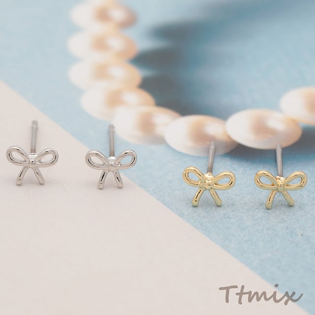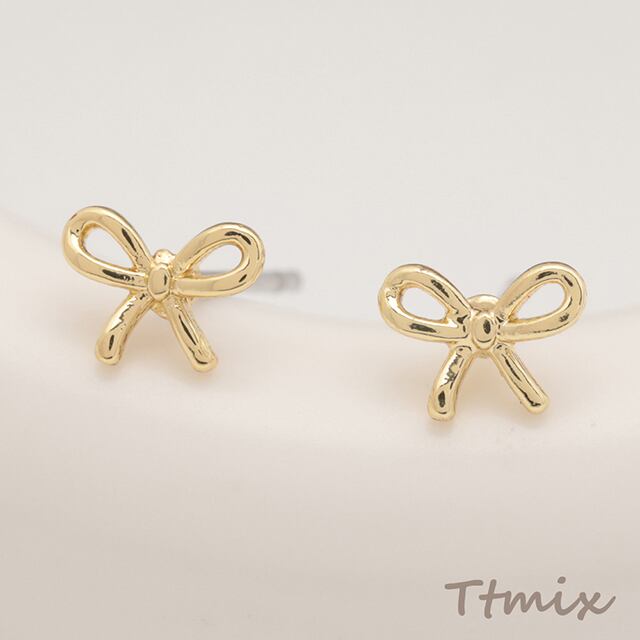 M15906 デザインピアス りぼん リボン 蝶々結び キャッチ鉄製 メタルピアス 約4.5×6mm(4ヶ)