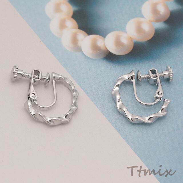 LS1183 デザインイヤリング C字 ツイスト ネジバネ式 メタルイヤリング 約3×18mm(1ペア)