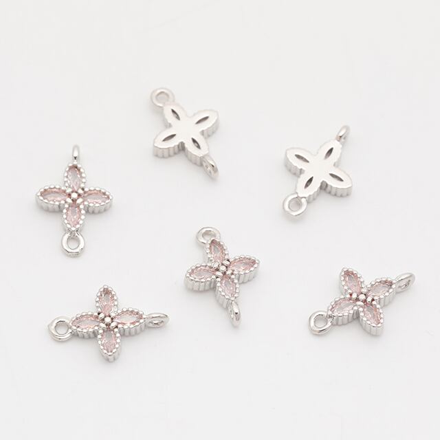 M15910 コネクターチャーム 四つ葉 クロス ジルコニア ストーン付き メタルチャーム 約8×12mm(2ヶ)