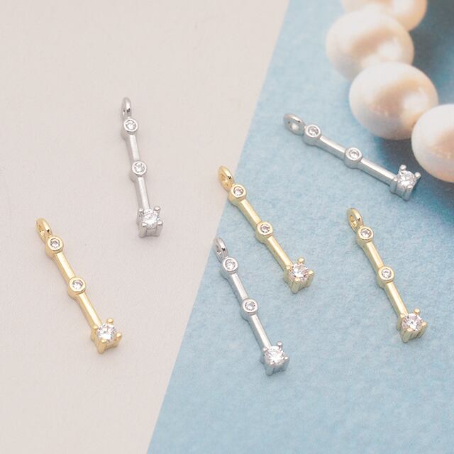 M15911 スティックチャーム スペーサービーズ ジルコニア ストーン付き メタルチャーム 約2.5×15mm(2ヶ)