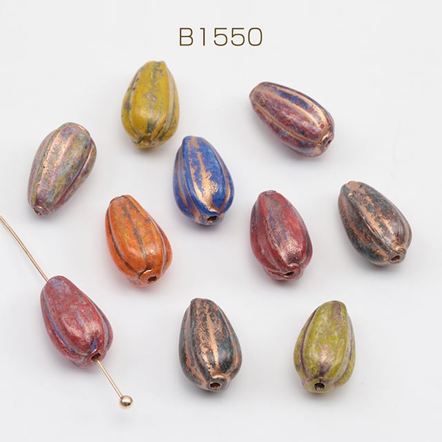 B1550 チェコ調ガラスビーズ かぼちゃ型 ドロップメロン チェコガラス風 アンティーク風 カラーランダム 約8×13mm(10ヶ)