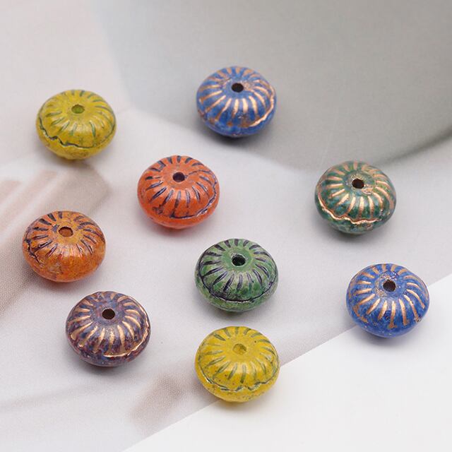 B1552 チェコ調ガラスビーズ 模様入り そろばん型 ソロバン チェコガラス風 アンティーク風 カラーランダム 約6×10mm(10ヶ)