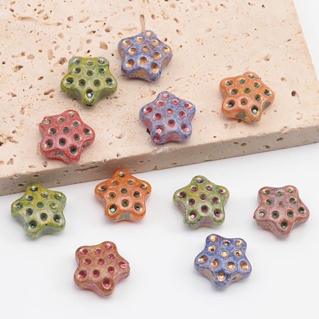 B1558 チェコ調ガラスビーズ ヒトデ 星型 チェコガラス風 アンティーク風 カラーランダム 約14mm(8ヶ)
