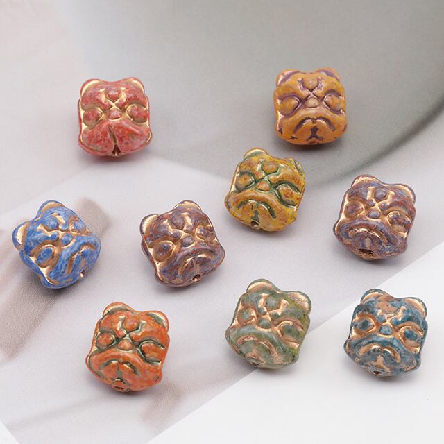 B1574 チェコ調ガラスビーズ ライオン 獅子 チェコガラス風 アンティーク風 カラーランダム 約12×13mm(8ヶ)