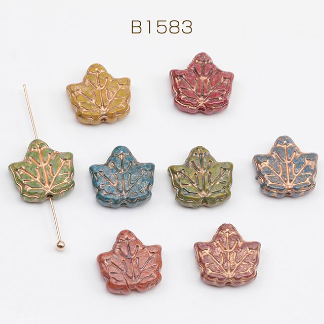 B1583 チェコ調ガラスビーズ カエデの葉 リーフ チェコガラス風 アンティーク風 カラーランダム 約12×13mm(10ヶ)
