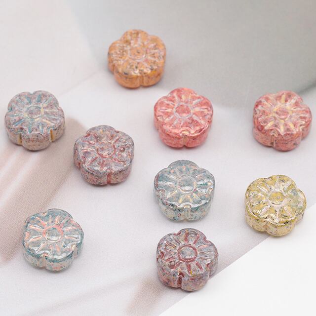 B1595 チェコ調ガラスビーズ お花 花形 フラワービーズ チェコガラス風 アンティーク風 カラーランダム 約10mm(15ヶ)