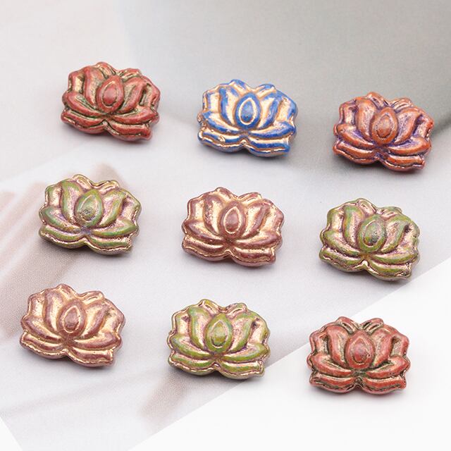 B1596 チェコ調ガラスビーズ 蓮の花 花形 フラワービーズ チェコガラス風 アンティーク風 カラーランダム 約11×15mm(10ヶ)