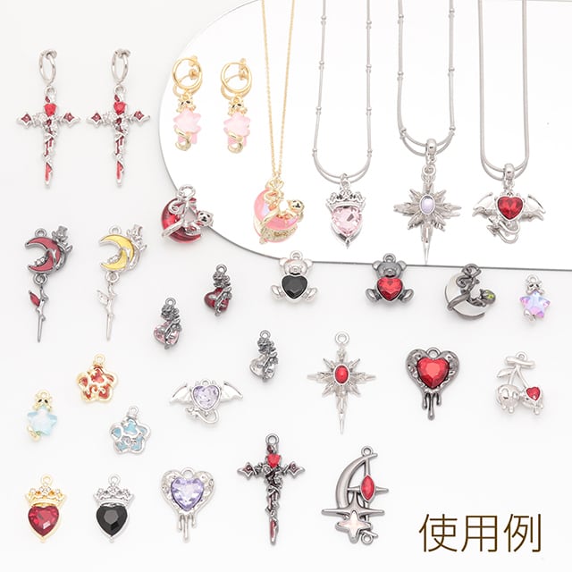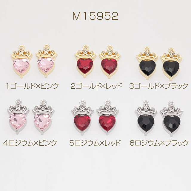 M15952 ハートチャーム 王冠 ラインストーン付き ガラスチャーム メタルチャーム 約14×23mm(2ヶ)