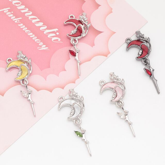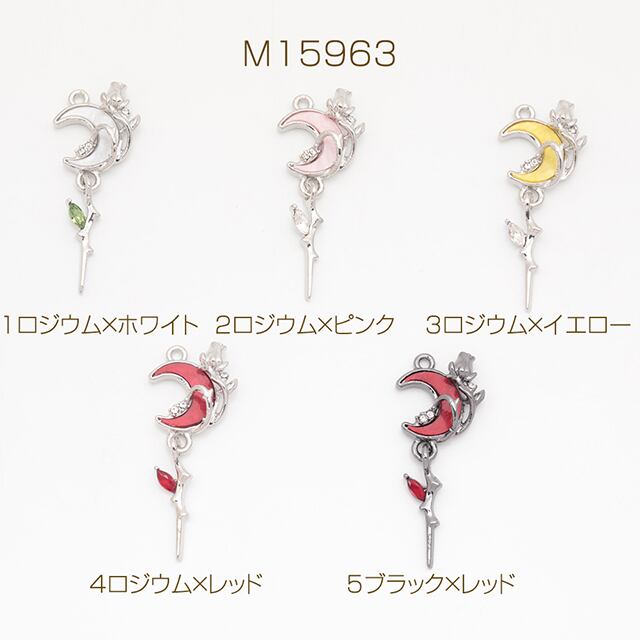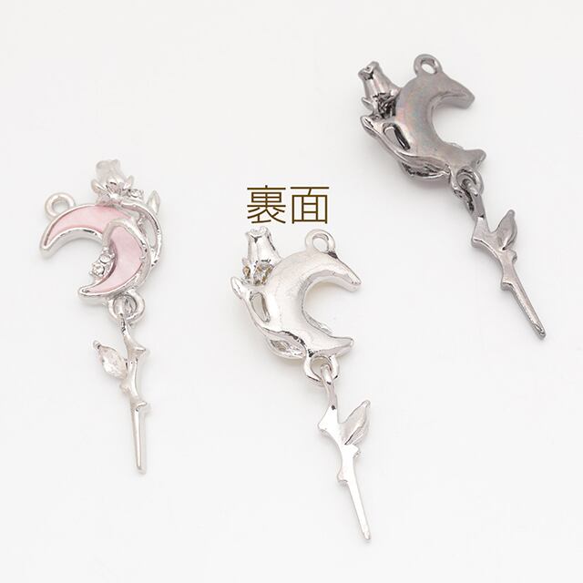M15963 月チャーム 三日月 いばら 揺れる枝 ストーン付き 宇宙チャーム メタルチャーム 約16×41mm(2ヶ)