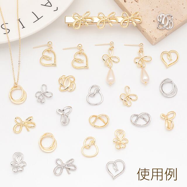 M15972 メタルパーツ 結び目デザイン 二重ラウンド風 コネクターパーツ 接続金具 カンなし メタルチャーム 約14×16mm(6ヶ)