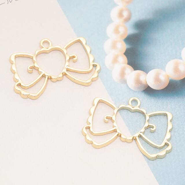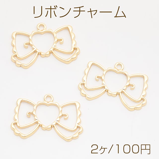 M15974 リボンチャーム りぼん 蝶々結び レジン枠 フレームチャーム メタルチャーム 約24×36mm(2ヶ)