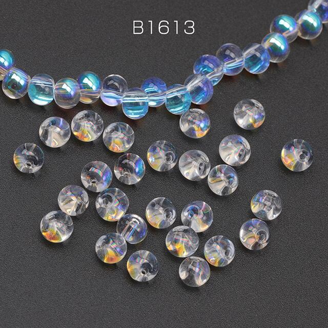 B1613 ガラスビーズ しずく型 ABカラー 電気メッキ加工 横穴 ドロップビーズ 約6mm(20ヶ)