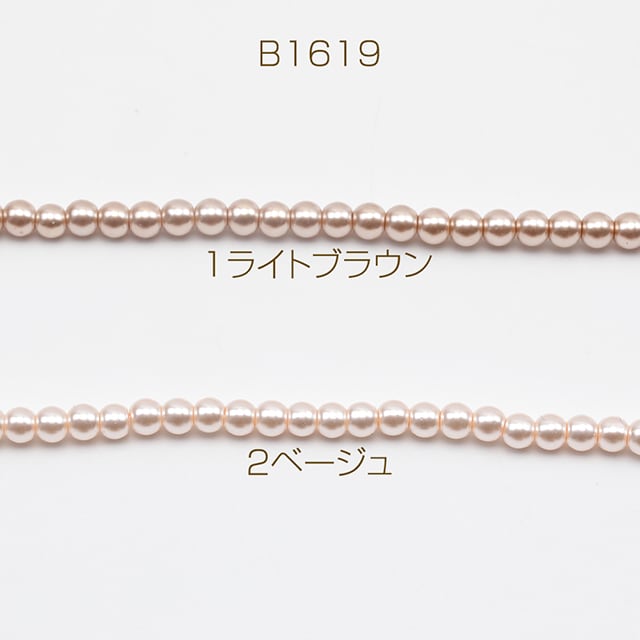 B1619 パール調ガラスビーズ ラウンド パール風 ライトブラウン 丸形ビーズ 約3mm(1連(約140ヶ))