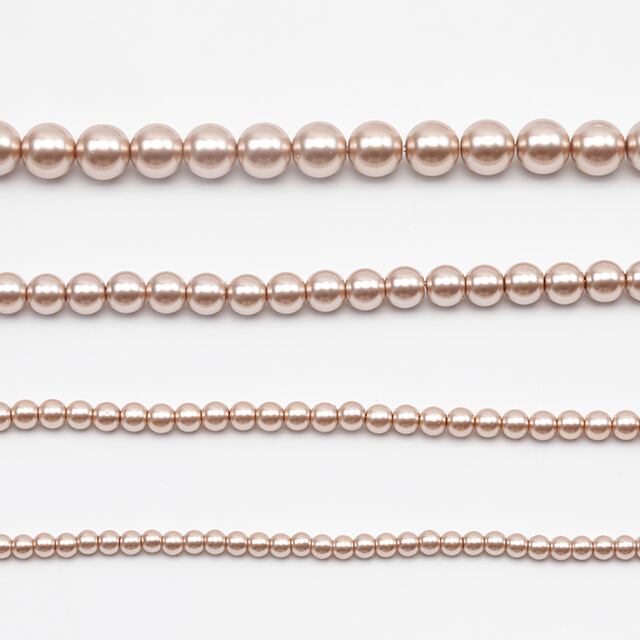 B1621 パール調ガラスビーズ ラウンド パール風 ライトブラウン 丸形ビーズ 約6mm(1連(約70ヶ))