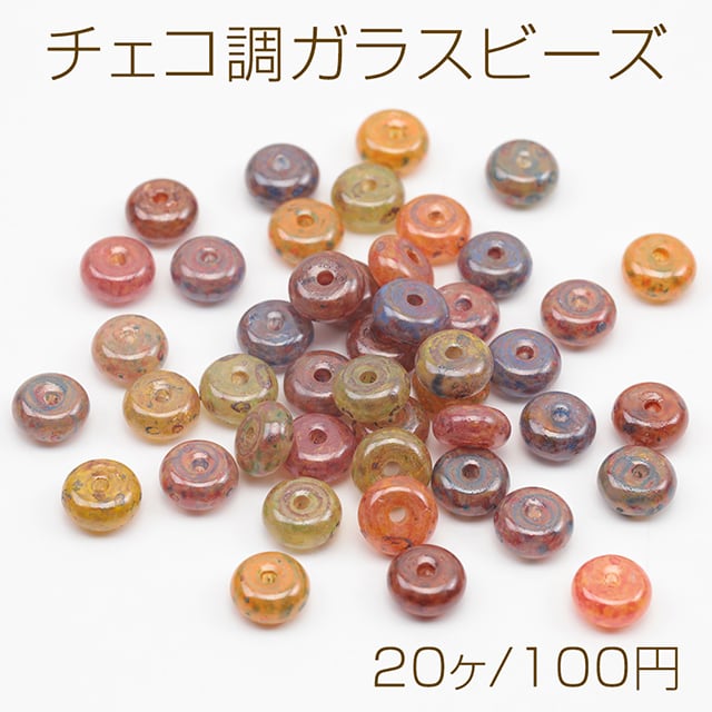 B1626 チェコ調ガラスビーズ そろばん型 チェコガラス風 アンティーク風 カラーランダム 約3×6mm(20ヶ)