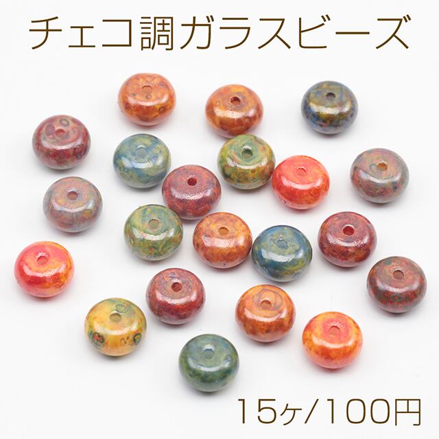 B1628 チェコ調ガラスビーズ そろばん型 チェコガラス風 アンティーク風 カラーランダム 約5×8mm(15ヶ)
