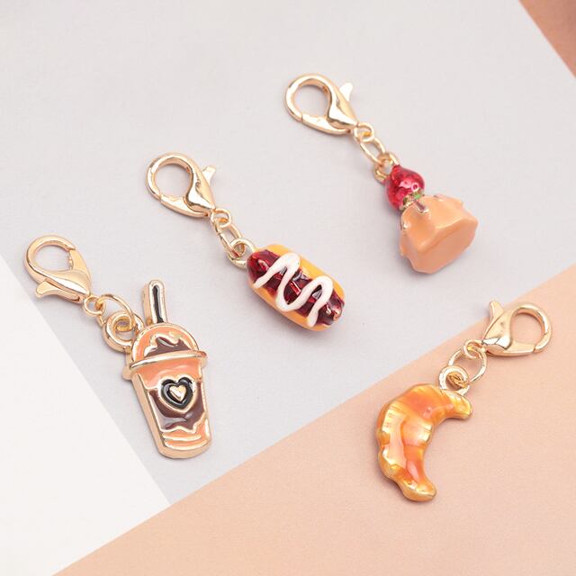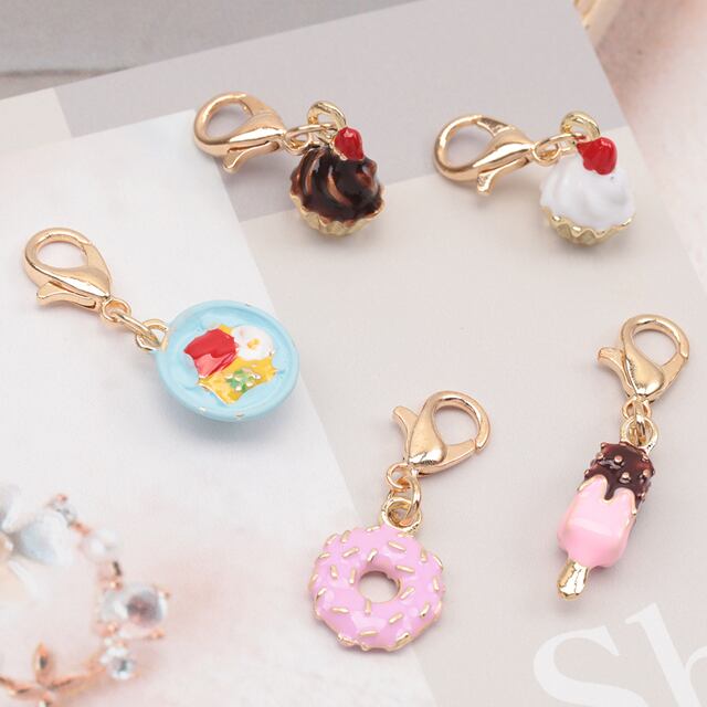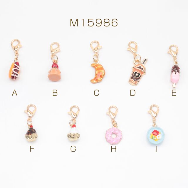 M15986 カニカン付きチャーム スイーツ カフェ ケーキ ドーナツ クロワッサン アイス 食べ物 スマホチャーム マスクチャーム(1ヶ)