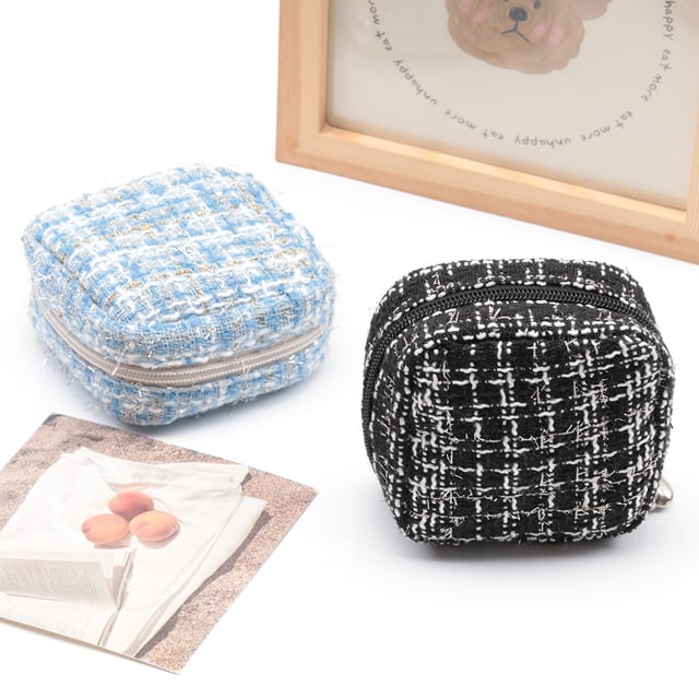 KW678 コスメポーチ スクエア 小型 ツイード生地 化粧ポーチ コスメバッグ ミニポーチ 小物入れ 約5×10×10cm(1ヶ)