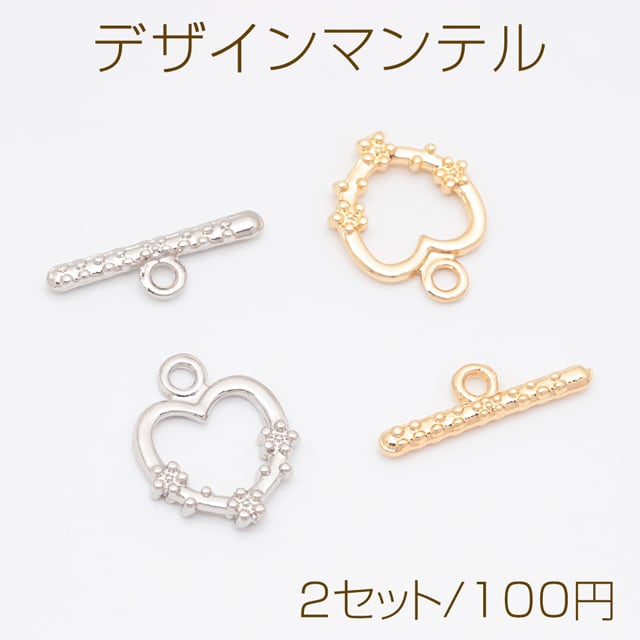 M16008 デザインマンテル ハート 花 留め具 ネックレス ブレスレット 約15×19mm&約22mm (2セット)