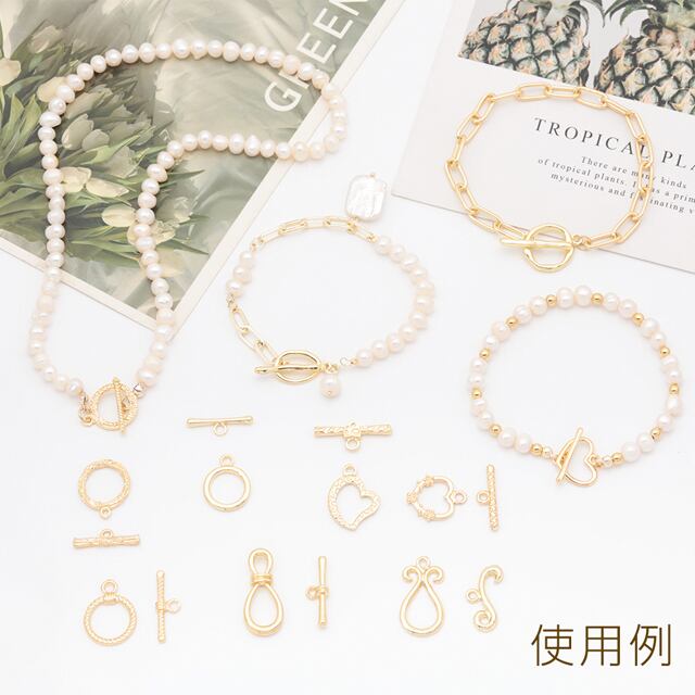 M16010 デザインマンテル ハート 花 留め具 ネックレス ブレスレット 約16×22mm&約24mm (2セット)