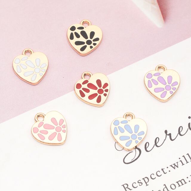 M16035 エポチャーム ハート 花模様 プレートチャーム メタルチャーム 約11×12mm(4ヶ)