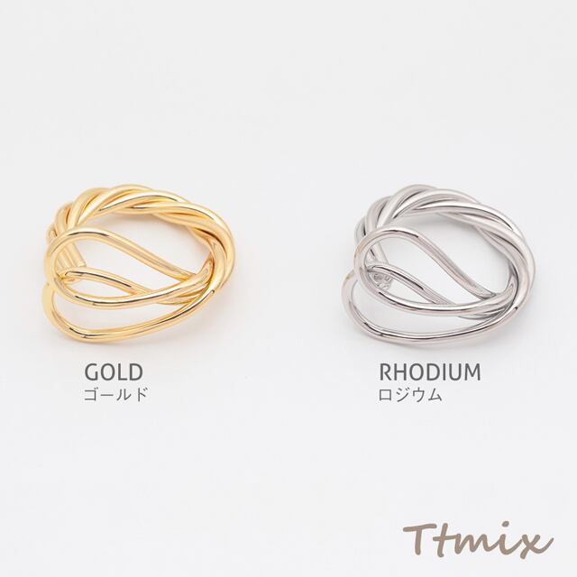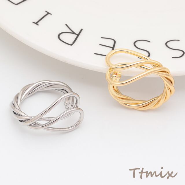 M16053 デザインリング 多層ツイスト 指輪 メタル オープンリング 14号内径約17.4mm(幅約17mm)(1ヶ)