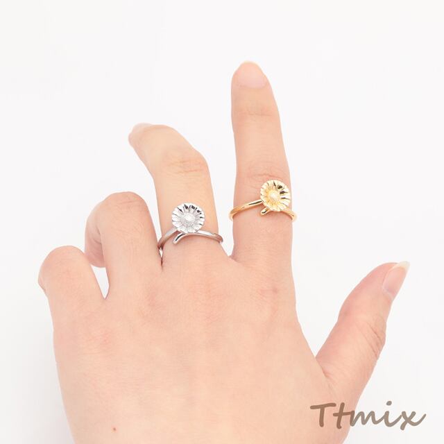M16063 ファッションリング 指輪 ガーベラモチーフ 花のリング レディース用 サイズ調整可 内径約17.4mm(幅約10mm)(1個)