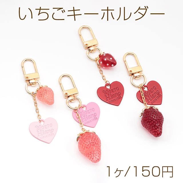 M16073 いちごキーホルダー ハートチャーム付き 苺ストラップ イチゴバッグチャーム 鍵とパスケースに付けても可愛い(1個)