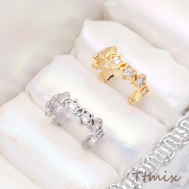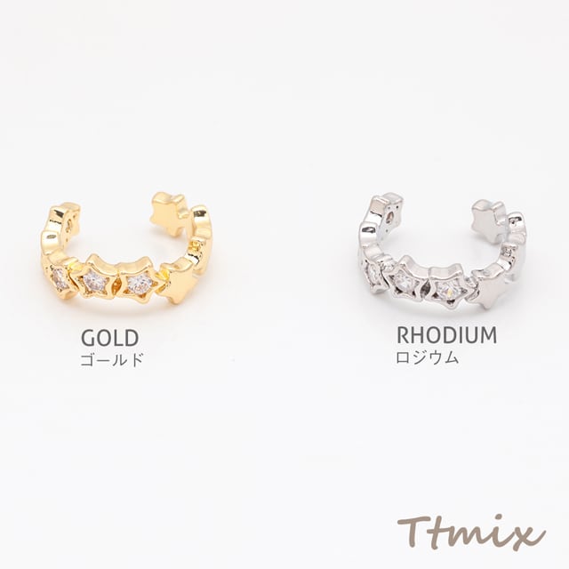 M16075 イヤーカフ スター 星形 ジルコニア付き ピアスホール不要 片耳 両耳 耳飾り メタルイヤーカフ 約4×14mm(1ヶ)
