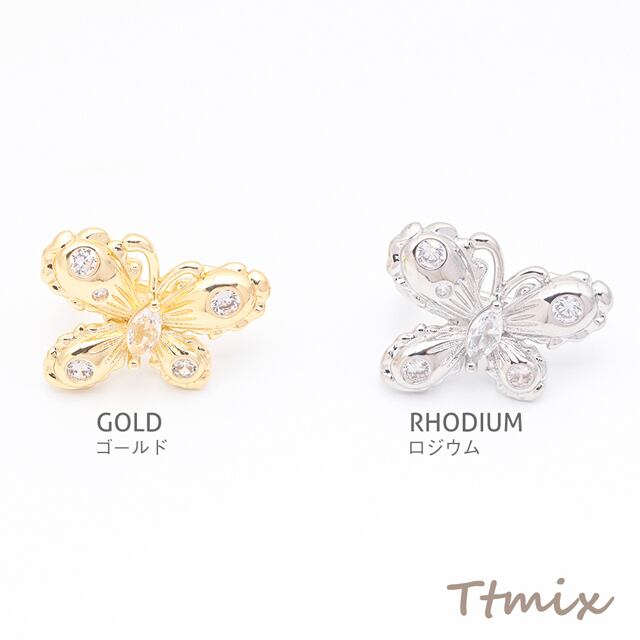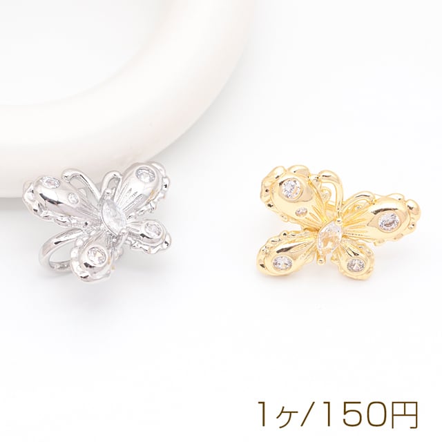 M16086 イヤーカフ 蝶々 ジルコニア付き ちょうちょ ピアスホール不要 片耳 両耳 耳飾り メタルイヤーカフ 約17×22mm(1ヶ)