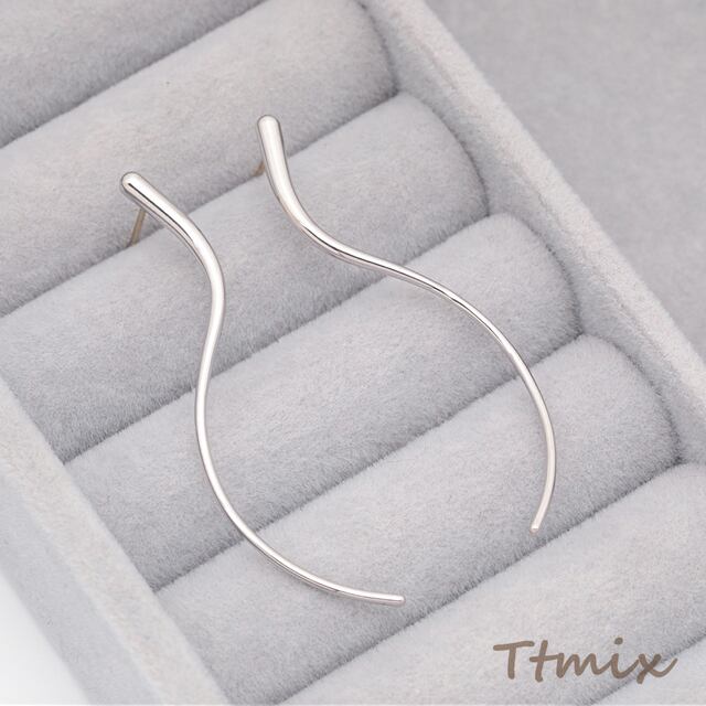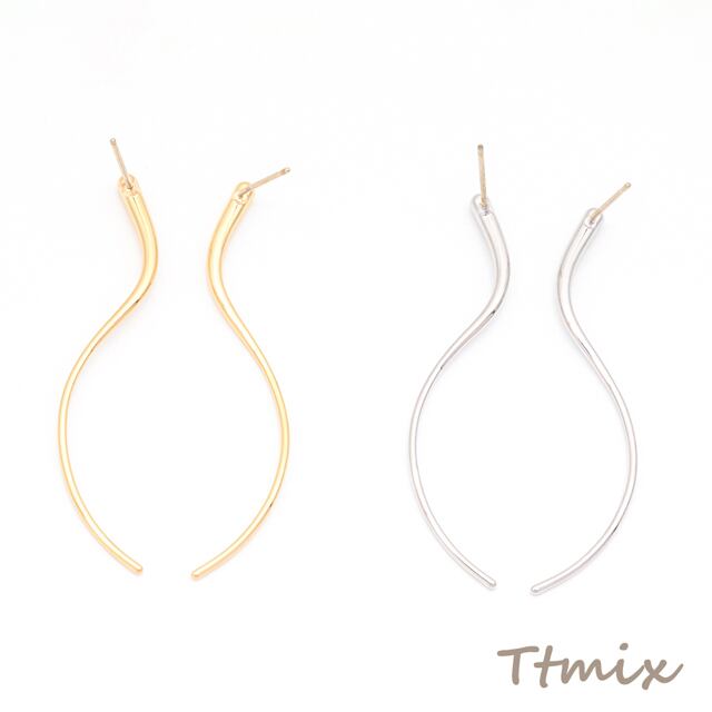 M16087 デザインピアス S字 ロングスティック ウェーブ スタッドピアス メタルピアス 約2.5×52mm(1ペア)