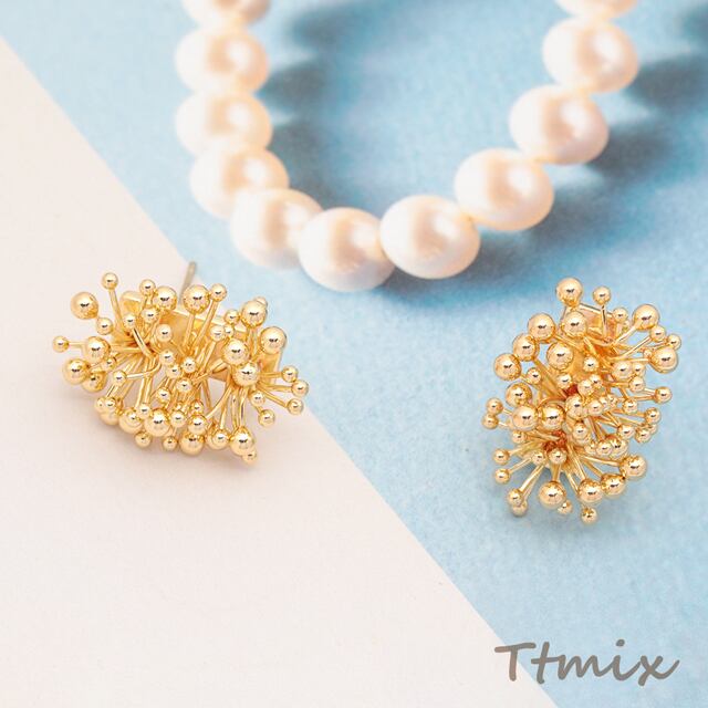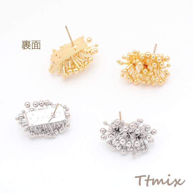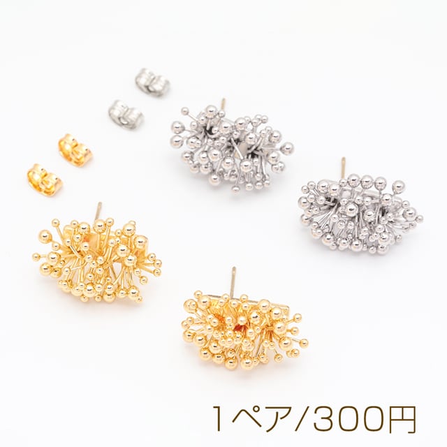 M16092 デザインピアス 花火風 メタルビーズ スタッドピアス メタルピアス 約15×20mm(1ペア)