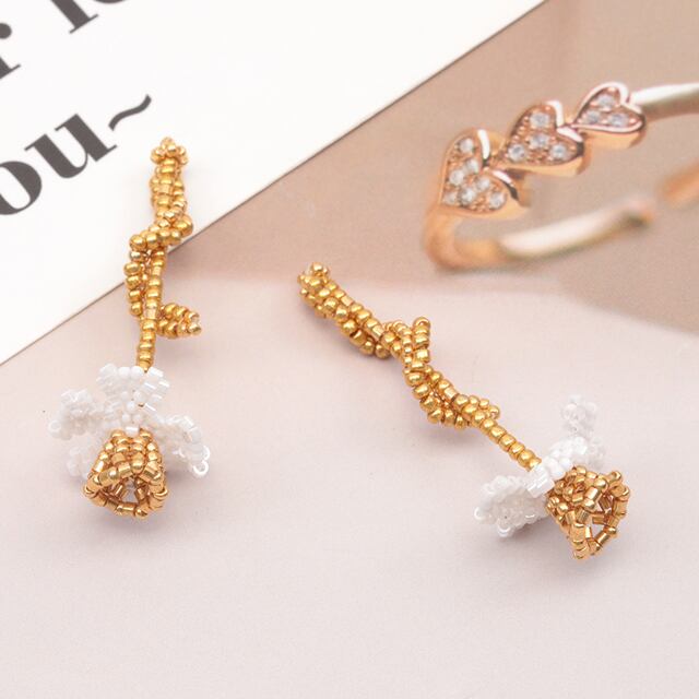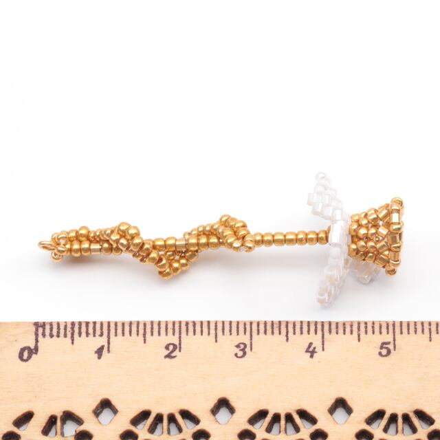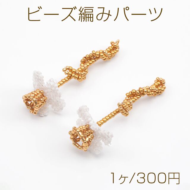 B1642 ビーズ編みパーツ お花 一輪 編みフラワー 手作り ビーズ編みチャーム 約20×50mm(1ヶ)