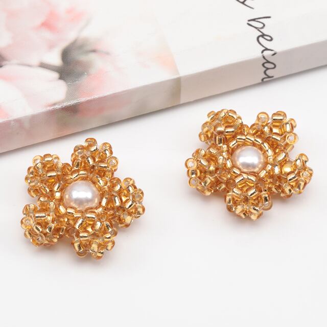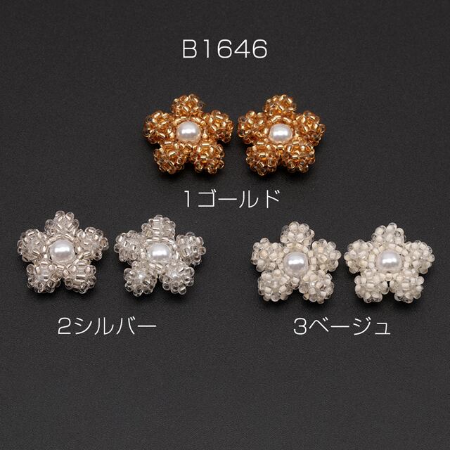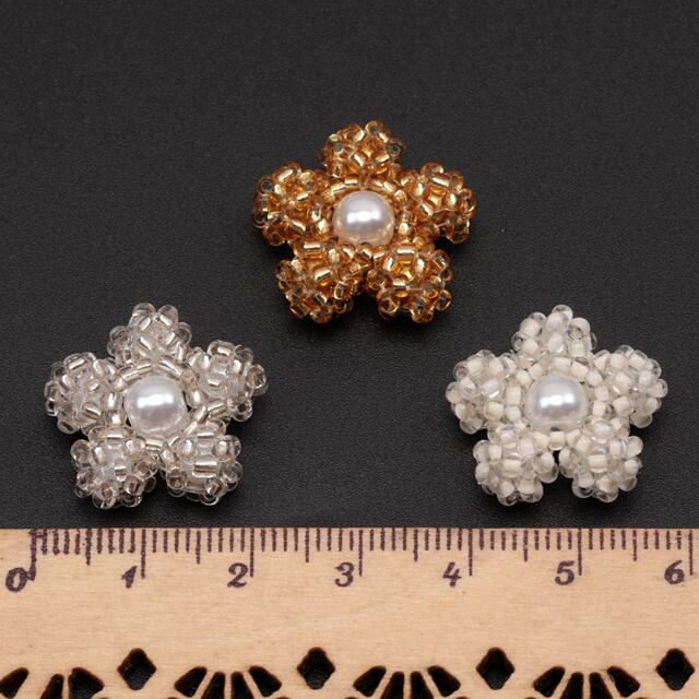 B1646 ビーズ編みパーツ お花 五弁花 ABSパール 編みフラワー 手作り ビーズ編みチャーム 約20mm(1ヶ)